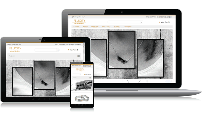 This template is called Premium Responsive Design Felicity and comes with the integrated Ecommerce Templates shopping cart software. It adapts to the size, resolution and orientation of the viewer's screen, meaning it looks great on a desktop computer, laptop, tablet and smartphone. The download provides everything you need to set up your online store, including the backend control panel for product, shipping, tax etc. administration.