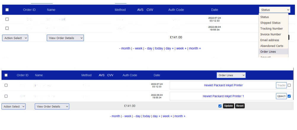 Hi Vince Once on the Orders Adminsitration page then selecting Order Lines from the Status dropdown & entering a postal tracking number & then choosing update works perfectly. The same issue has been mentioned by two of my clients & that is the tracking number does not appear once you are inside the actual order page. Once the tracking number has been entered via the Order Lines facility, could this be made available to view once viewing the full order in the Order Status area?  Steve Manchester UK "Anything in life that is worth doing is worth overdoing, moderation is for cowards"