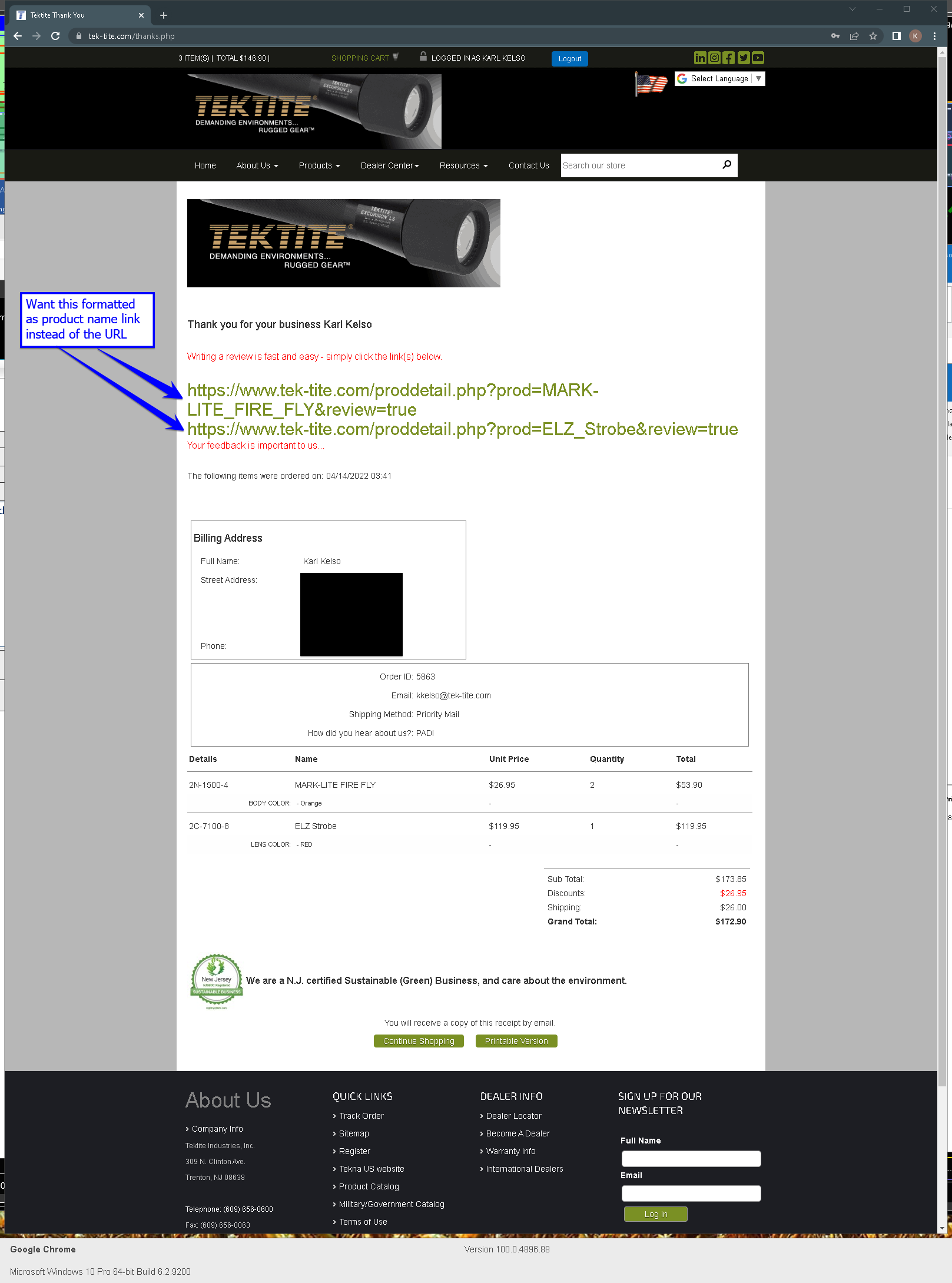 Sorry kmkelso, I wasn't aware you could use that on the thanks page. Really, you might want to ask for a review there as they have not received the product yet, so how can they review? What we do is move orders from shipped status, to completed about a month after they ship. This email has the review links and at this stage, customers typically have had the chance to use the product(s).