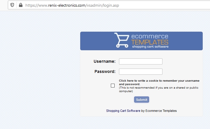 It takes me back to https://www.renix-electronics.com/vsadmin/login.asp 500 - Internal server error. This implies some missing file on the server, I think.
