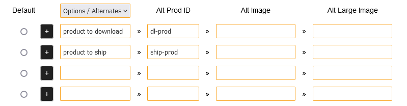 So you create two products, one to download and one to ship, set the download product to display and the ship product hidden, then create an option with two selections, one to download and one to ship, then add the Product ID's in the alt prod ID option fields